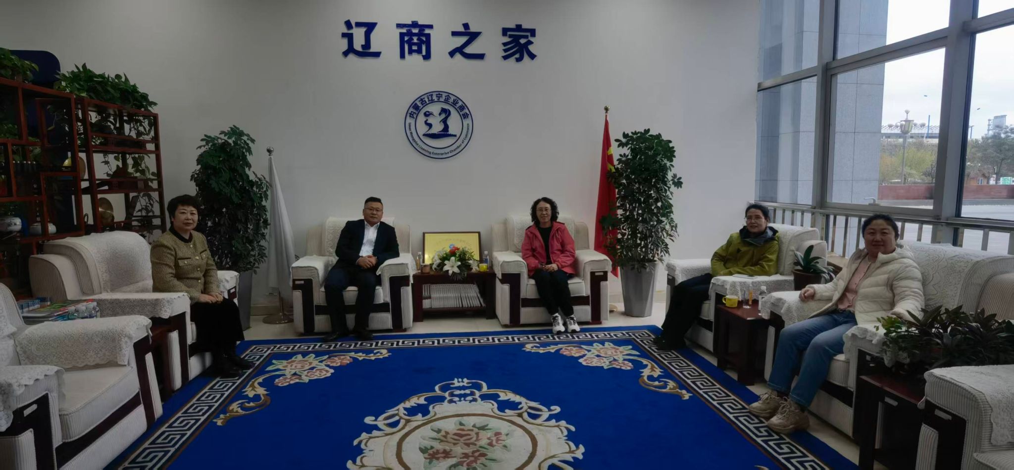 22 日,调研组前往呼和浩特市内蒙古辽宁企业商会,与商会会长周玉斌、副秘书长孔令梓展开交流。