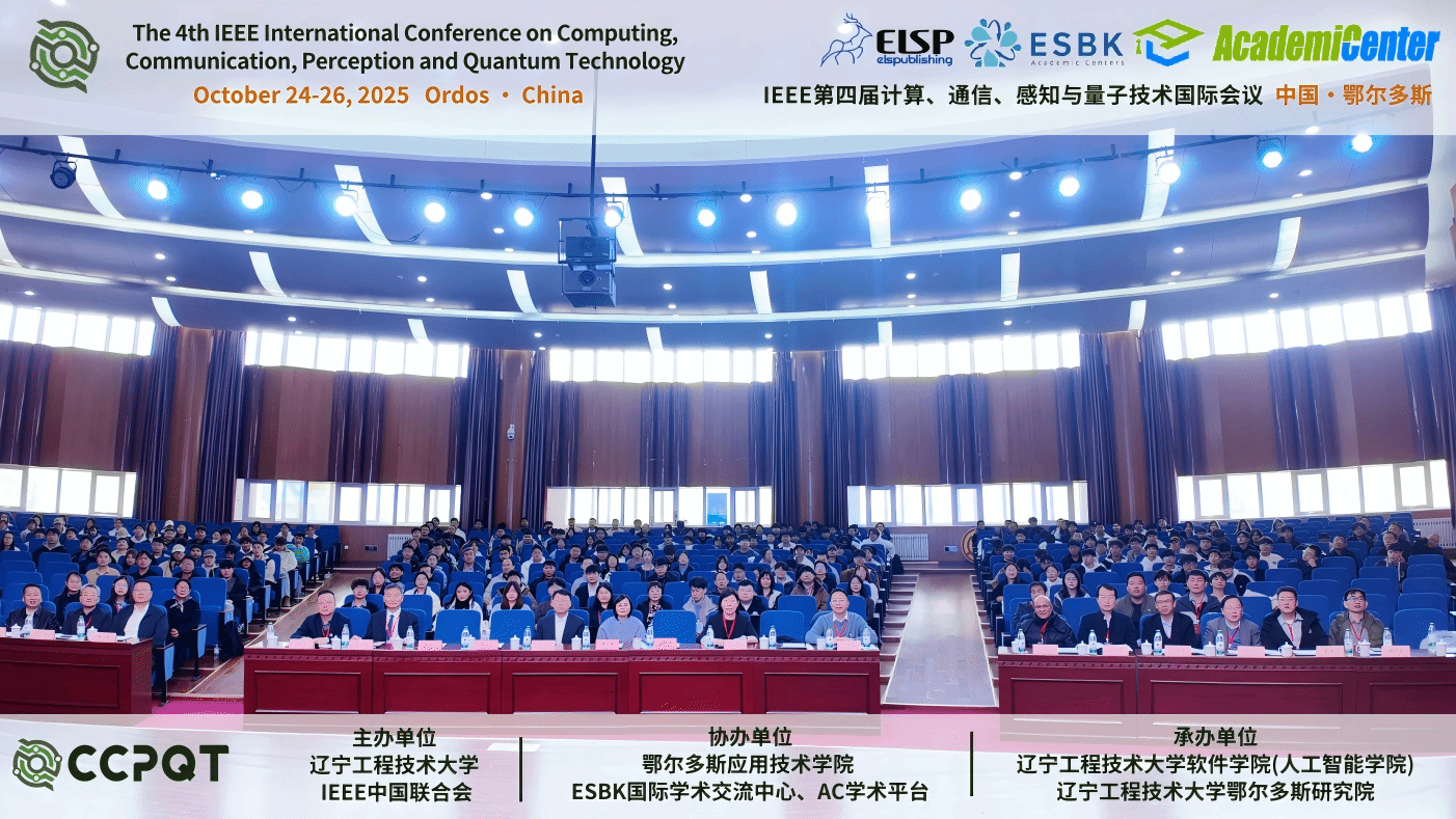10月25日-27日,备受业界瞩目的 2025 IEEE 第四届计算、通信、感知与量子技术国际会议(CCPQT 2025)在内蒙古鄂尔多斯盛大举行。此次会议由辽宁工程技术大学鄂尔多斯研究院承办。来自全国30多所高校、科研院所的400多名学者、行业专家及企业代表齐聚鄂尔多斯,共同探讨前沿技术发展趋势。辽宁工程技术大学副校长韩军,鄂尔多斯市教育体育局党组成员、副局长贺占平,鄂尔多斯高新区科技人才局副局长冯翰翔,校副秘书长、鄂尔多斯研究院执行院长韩雪峰,副院长兰天伟、彭泓等出席了开幕式。