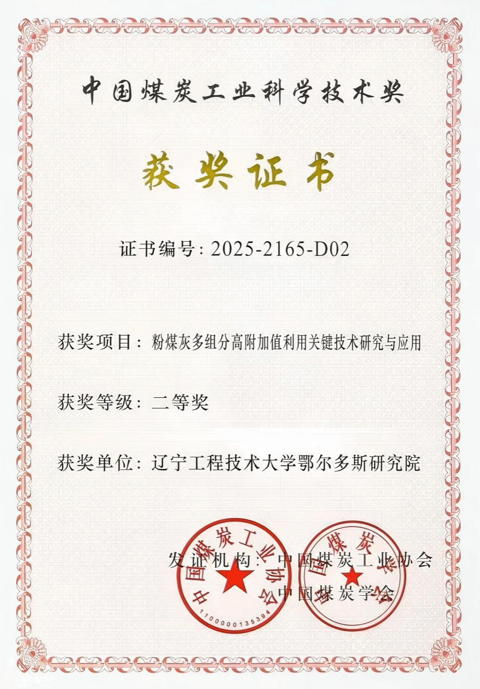 辽宁工程技术大学鄂尔多斯研究院作为学校服务西部能源与环保产业的重要平台,长期致力于煤矿灾害防治与矿区生态修复、固废资源化利用与绿色低碳技术研发,实现了前沿技术与产业实践的深度融合。此次获奖,是研究院深化产学研合作、推动科技成果落地转化的又一重要体现,后续将加速推动研究院科技成果向产业需求转化,为煤炭行业转型升级提供坚实技术支撑。