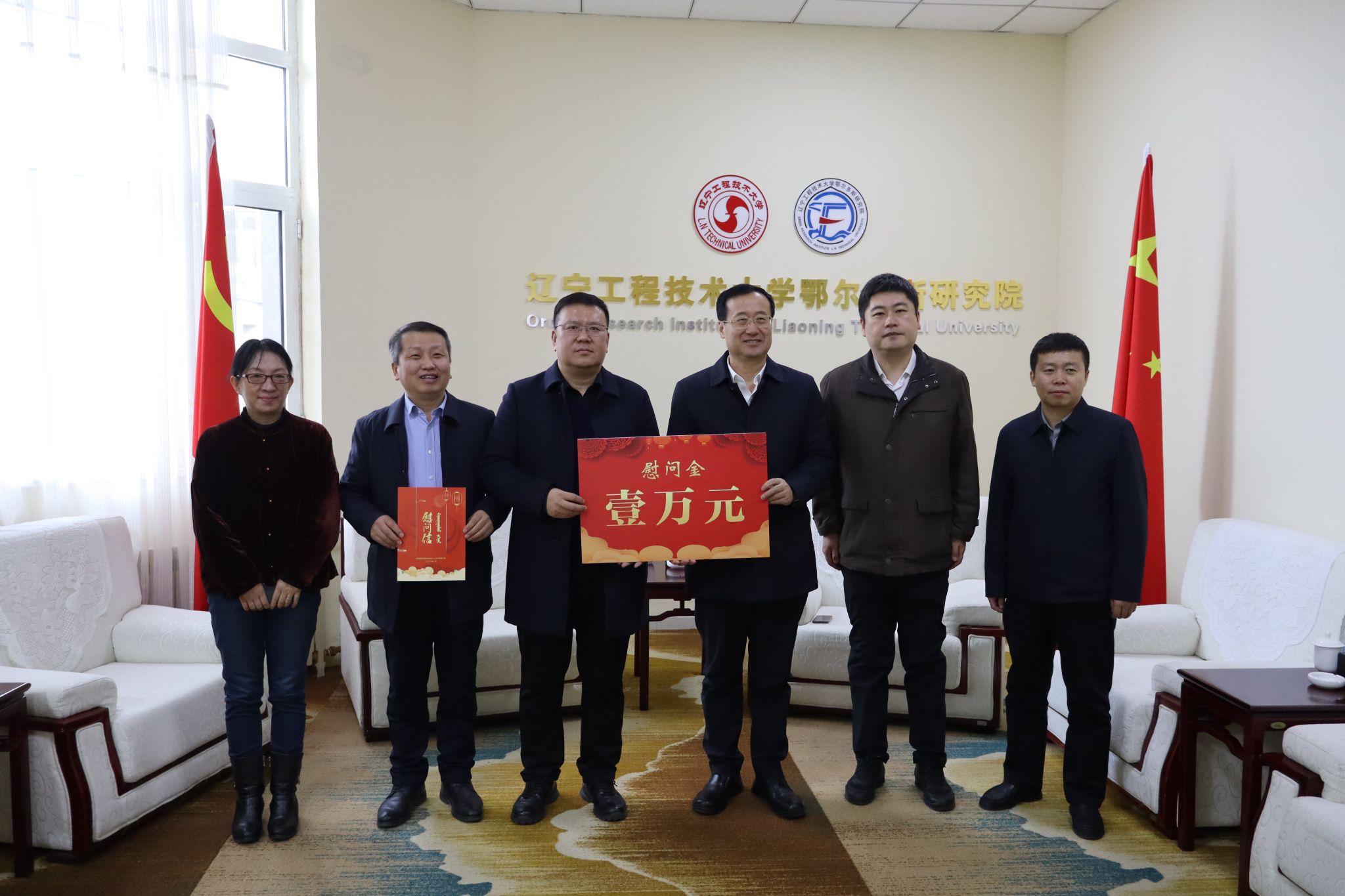 2月3日,鄂尔多斯市人力资源和社会保障局党组书记、局长张良,党组成员、副局长孟德志等一行莅临辽宁工程技术大学鄂尔多斯研究院,专题调研并慰问由兰天伟教授作为带头人的“矿井地质动力区划与冲击地压防治创新团队”。校副秘书长、研究院执行院长韩雪峰,副院长兰天伟、彭泓热情接待。