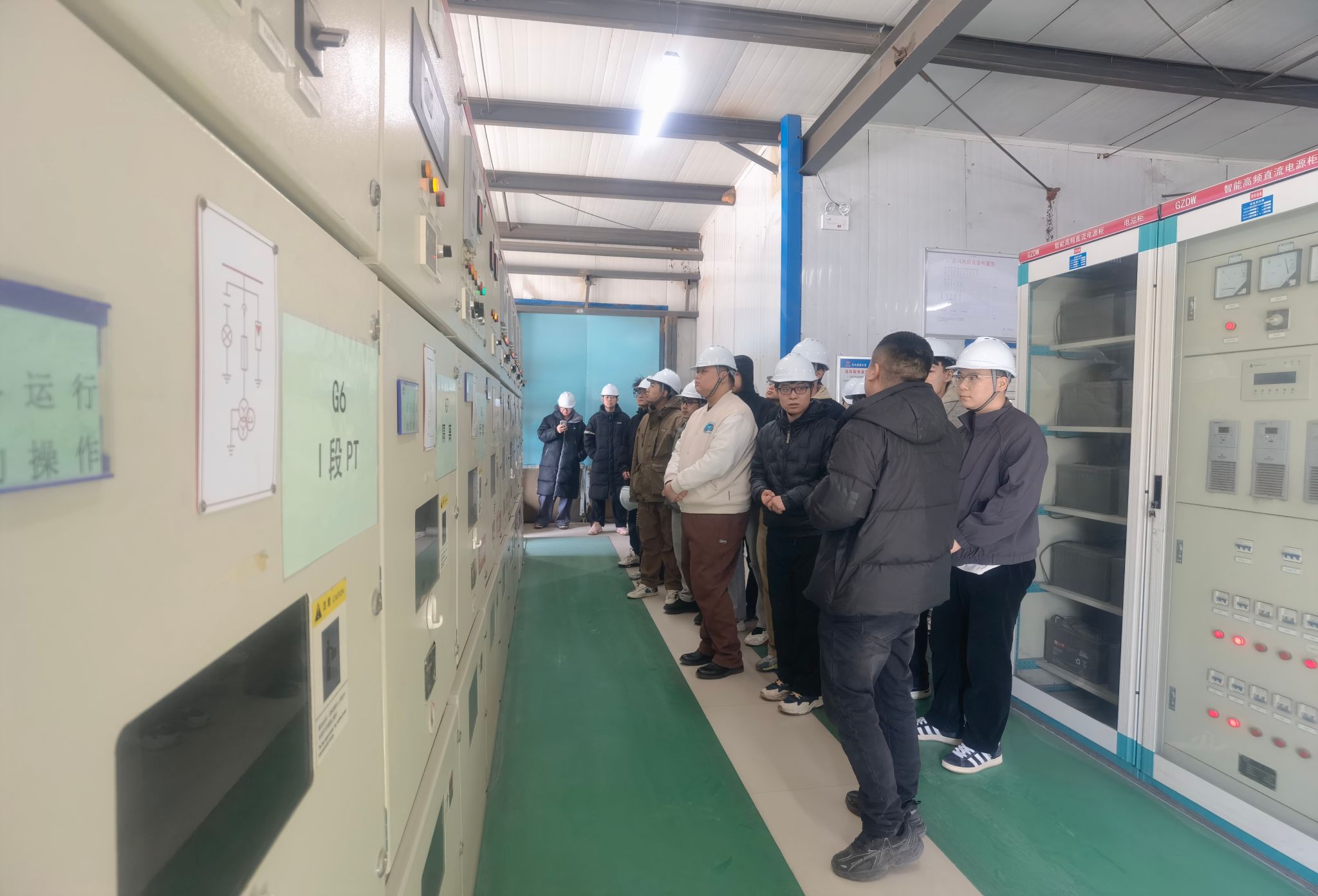 在神东天隆集团大海则煤矿,师生们从地面到井下沉浸式研学,先后参观矿井主副井提升系统、智能化调度中心、选煤厂及压风机房等地面设施,直观感受“智能化矿山”的高效管控模式。经过严格入井考核后,师生深入井下采煤工作面、掘进巷道等核心作业区域,技术师傅现场讲解液压支架支护原理、智能采煤机操作流程,同学们亲手触摸设备部件、观察围岩变形监测数据,深度理解顶板管理、支护参数优化等专业知识的实际应用。