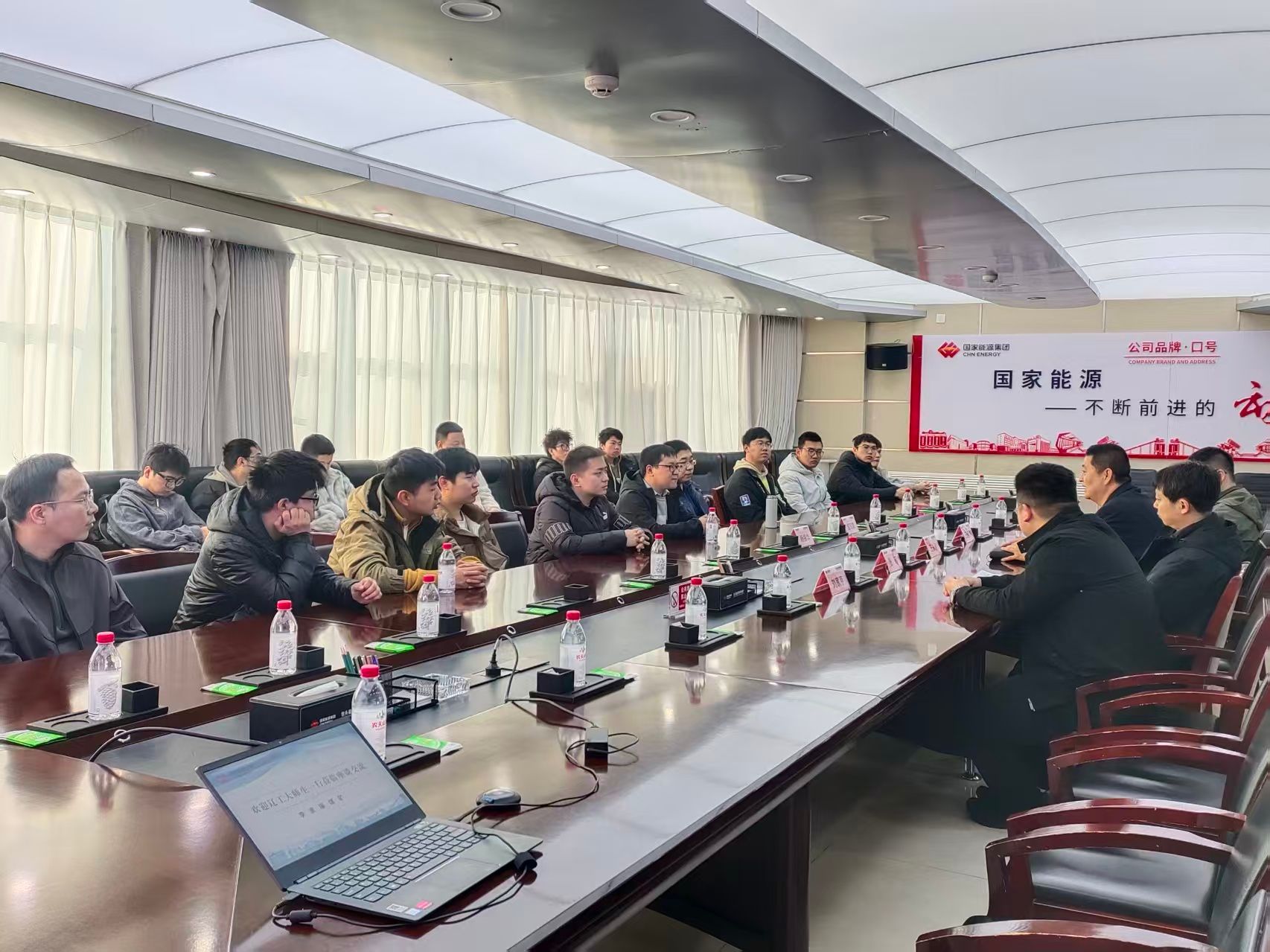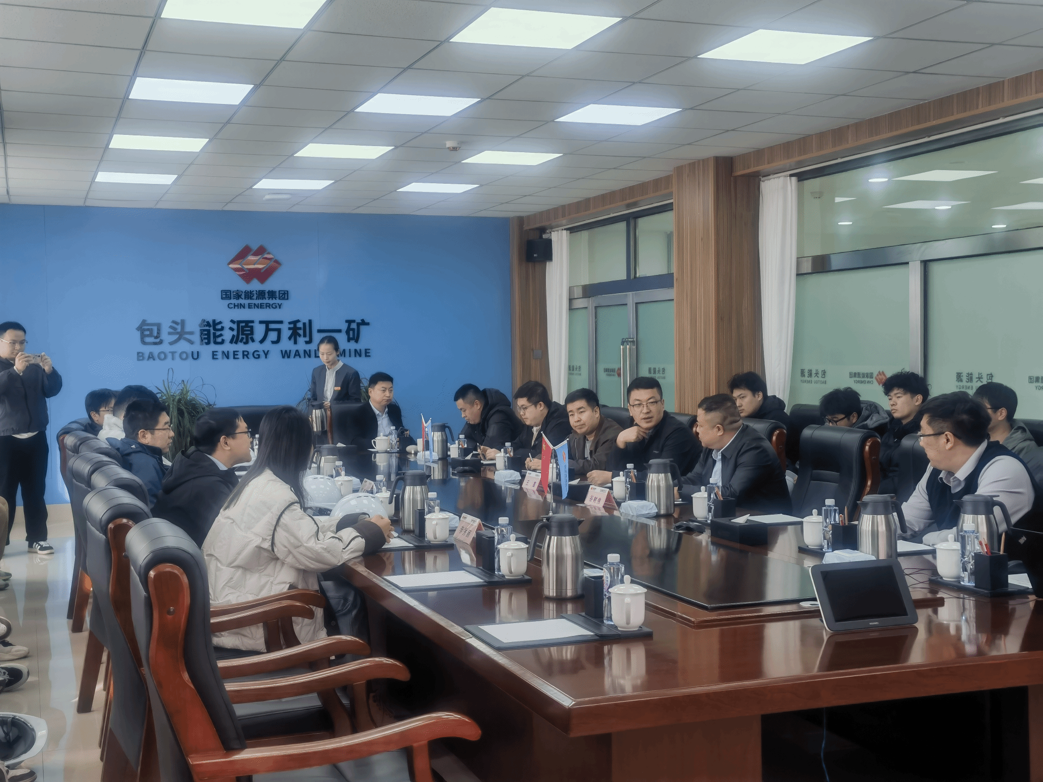 在包头能源万利一矿,企业负责人首先向师生介绍矿井基本概况、发展历程、产能规模、安全生产成果及智能化建设规划。作为现代化大型井工煤矿,该矿始终坚持“安全第一、预防为主、综合治理”方针,以智能化建设为抓手,全面推进“机械化换人、自动化减人、智能化无人”,构建起覆盖采掘、运输、通风、排水、供电、监测监控等全环节的智能生产体系,连续多年实现安全高效生产,成为区域内煤炭安全绿色智能开采的示范窗口。