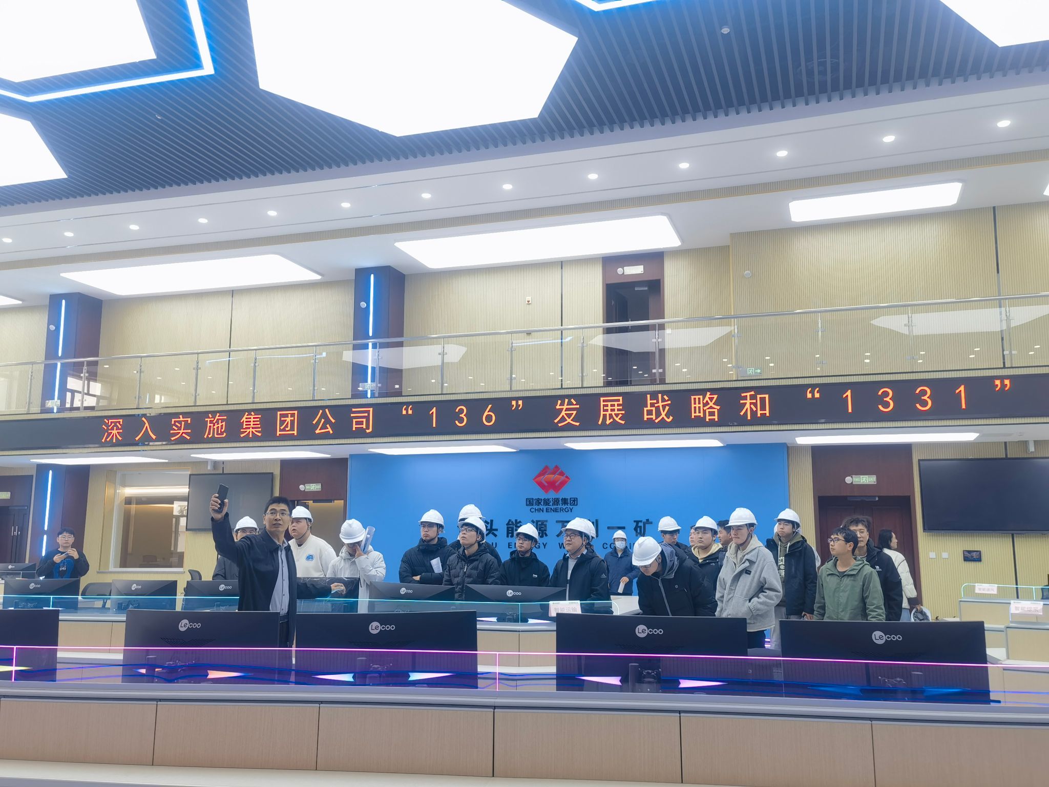 智能矿山一体化管控平台是现代矿井的“智慧大脑”,也是本次实习的核心学习内容。在三座矿井的调度指挥中心,巨型LED显示屏实时滚动着井下生产、安全、设备、人员等全维度数据,三维地质模型、设备运行状态、环境参数、视频画面一目了然,让师生们深受震撼。